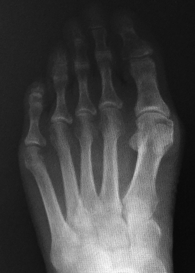 The outwards drift of the great toe, associated with the formation of a bony lump on the inside of the great toe joint.